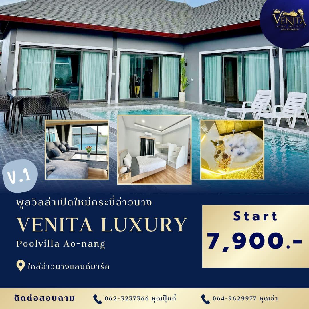 Venita Luxury Poolvilla V.1 features 3 bedrooms, 3 bathrooms, 1 kitchen, 1 living room, and parking for 2 cars. It accommodates 68 guests, with extra beds available for up to 5 more guests. Children under 7 years old stay free (up to 3 children). The villa offers a large swimming pool with a 4-jet jacuzzi spa for relaxation, and a separate children's pool for added safety. Inside, you'll find a refreshing jacuzzi and stylish floaties perfect for fun photo sessions ideal for family vacations or group getaways.